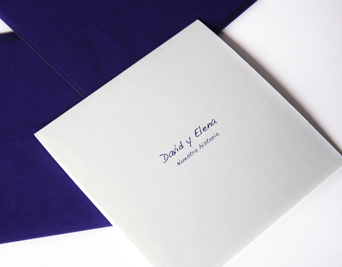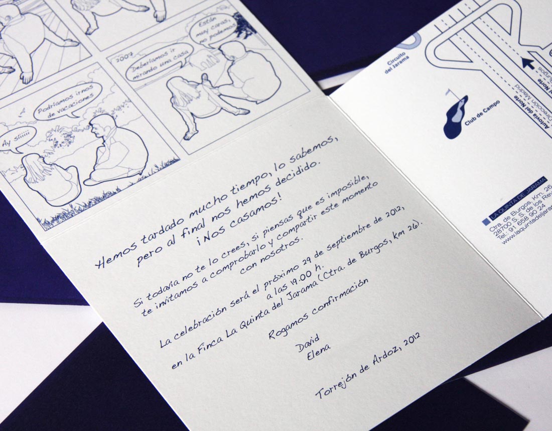Invitación de boda personalizada, ilustrando la historia de la pareja desde sus inicios en la relación.