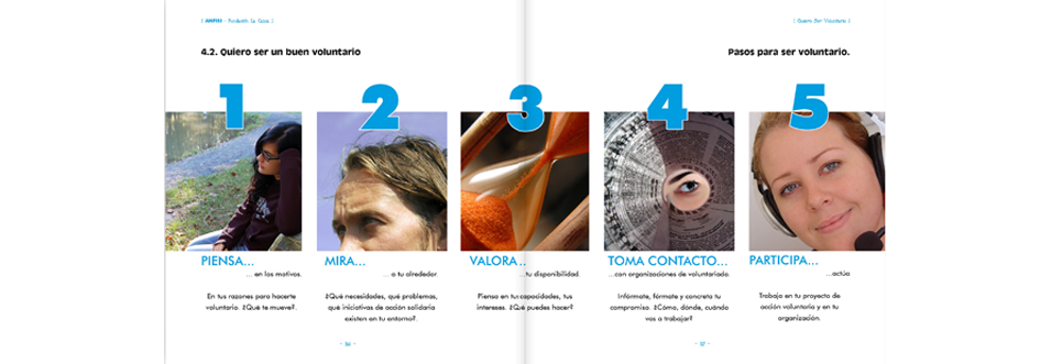 Diseño y maquetación de libro informativo “quiero ser voluntario” para la fundación anfisi.