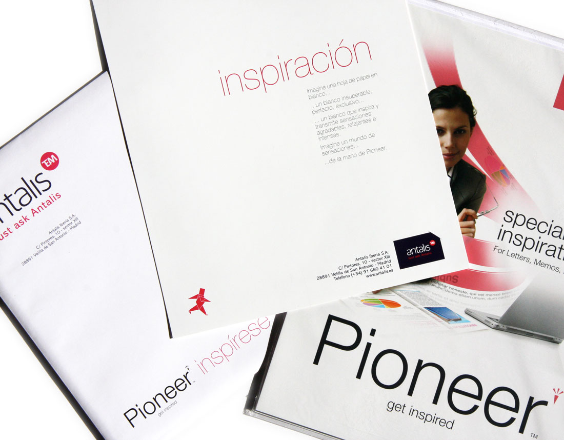 Diseño de tarjetón dirigido a prescriptores para la marca Pioneer que incluía miniresma.